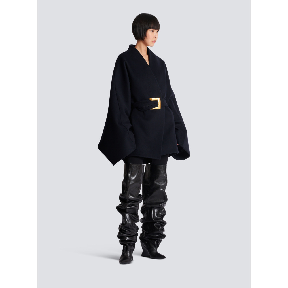 Укороченное шерстяное пальто-накидка