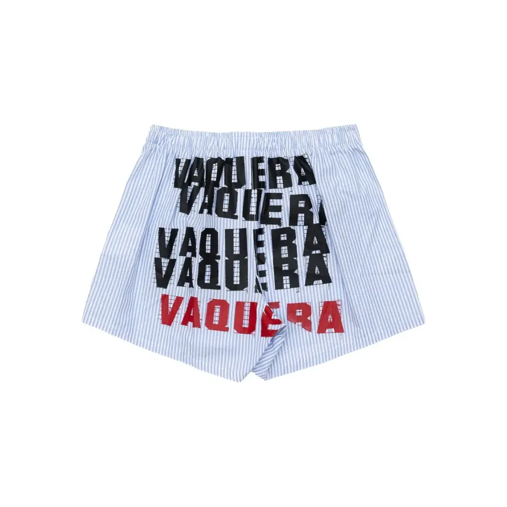 светло-голубая в полоску с графическим принтом, эластичный пояс, хлопок