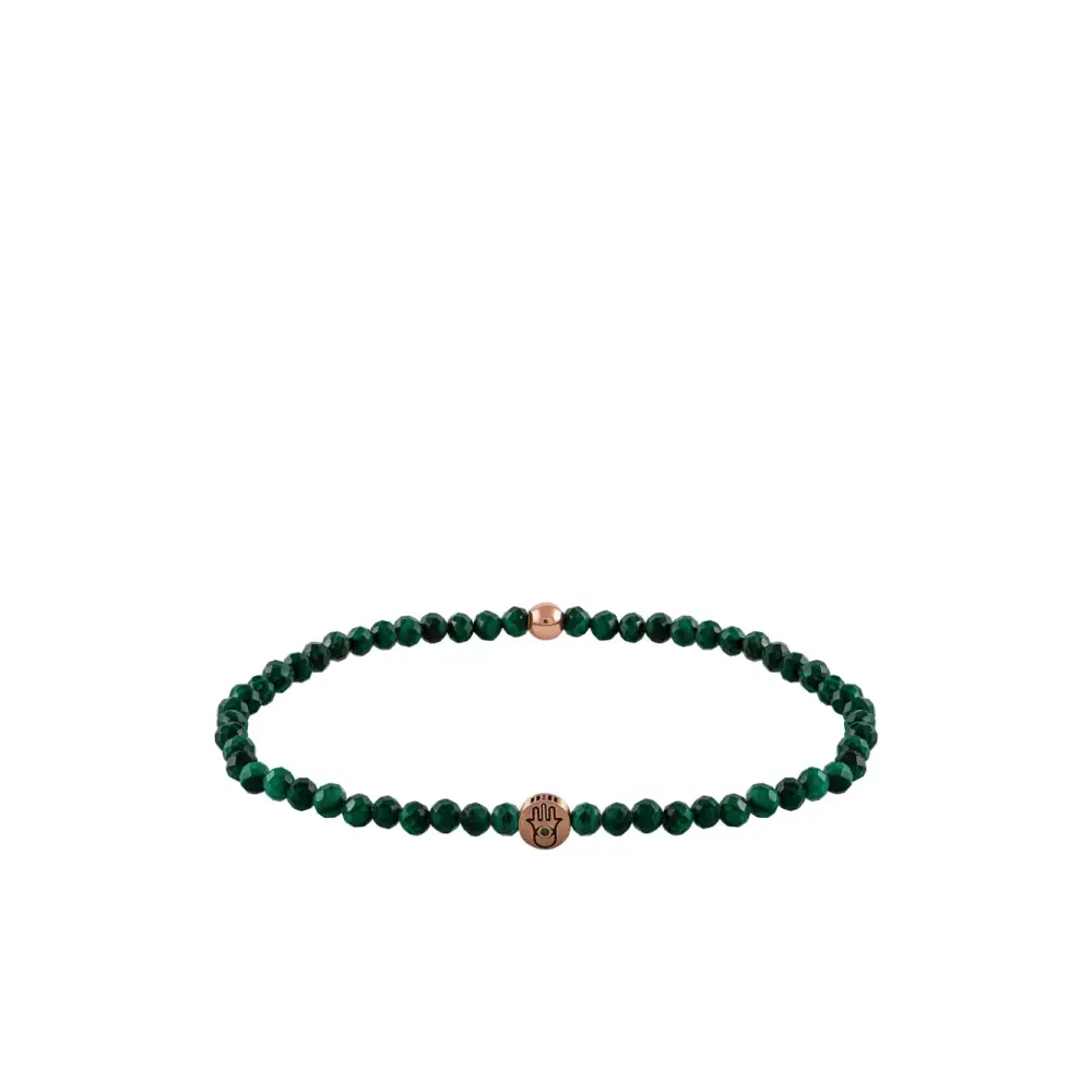 Браслет с рукой Хамса из малахита в золотом обрамлении 18 карат (розовое золото)