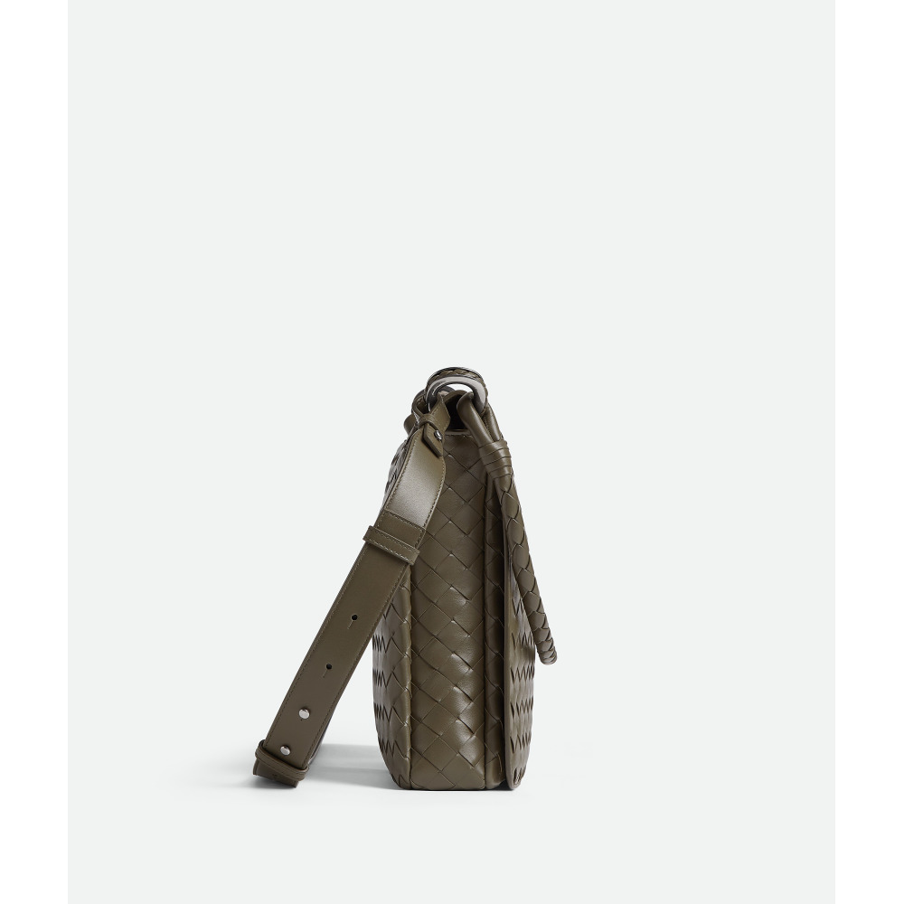 • Сумка-мессенджер из кожи "интреччато" с одним регулируемым и съемным плечевым ремнем и одним коаксиальным ремнем на плечо