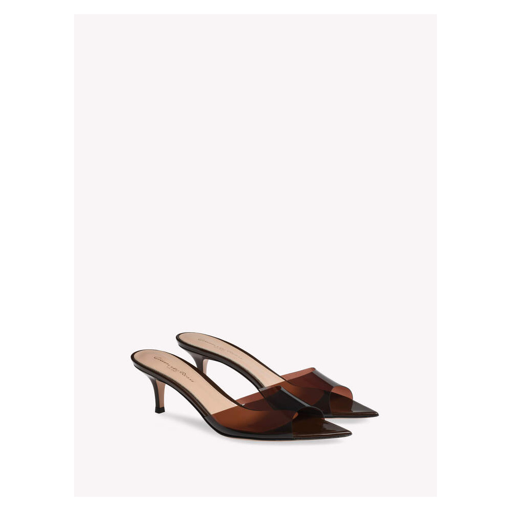Elle 55 - это изысканный туфель-мюл с заостренным носком и шпилькой 55 мм. Эта модель выполнена из лакированной кожи и прозрачного мягкого плексигласа. Ручная работа, Италия.