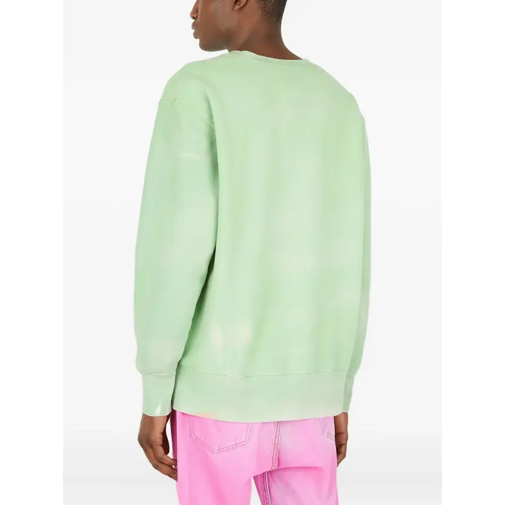 светло-зеленый свитшот из органического хлопка с круглым вырезом, заниженными плечами, длинными рукавами, трикотажной отделкой и полностью выполненным вручную окрашенным узором