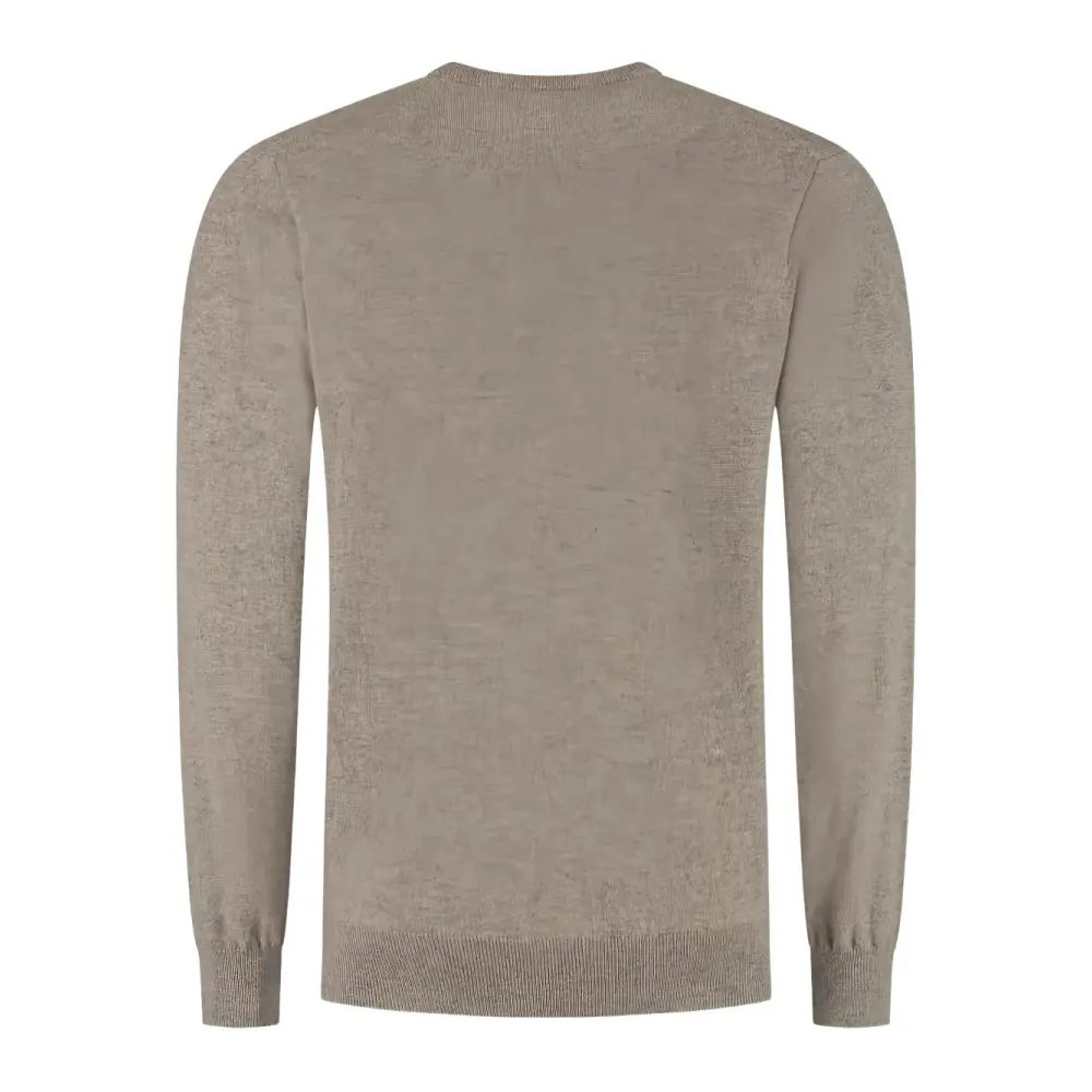 бежевый джемпер с круглым вырезом, длинными рукавами, рубчатыми манжетами и рубчатым краем, вязаная фактура