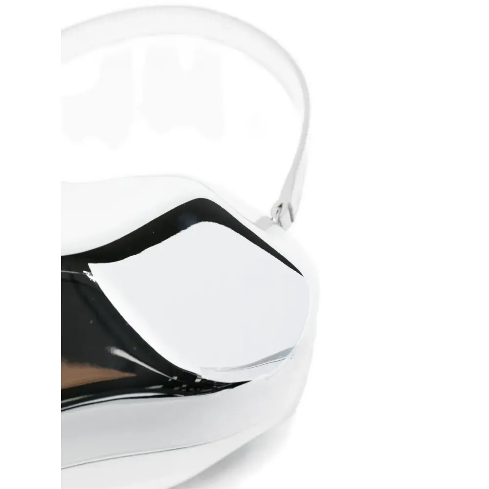 серебристая сумка с формованным дизайном в виде сердца, верхней ручкой, цепочкой-ремешком и застёжкой-защёлкой