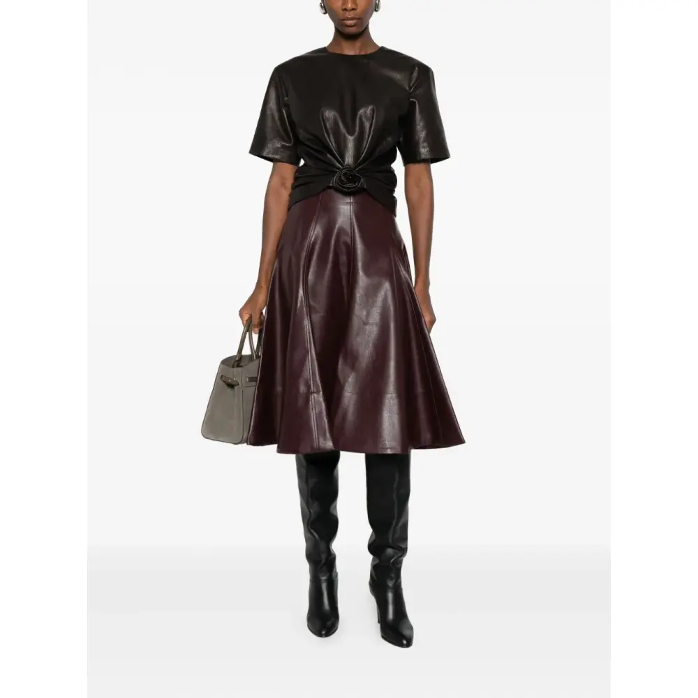Плиссированная кожаная миди-юбка