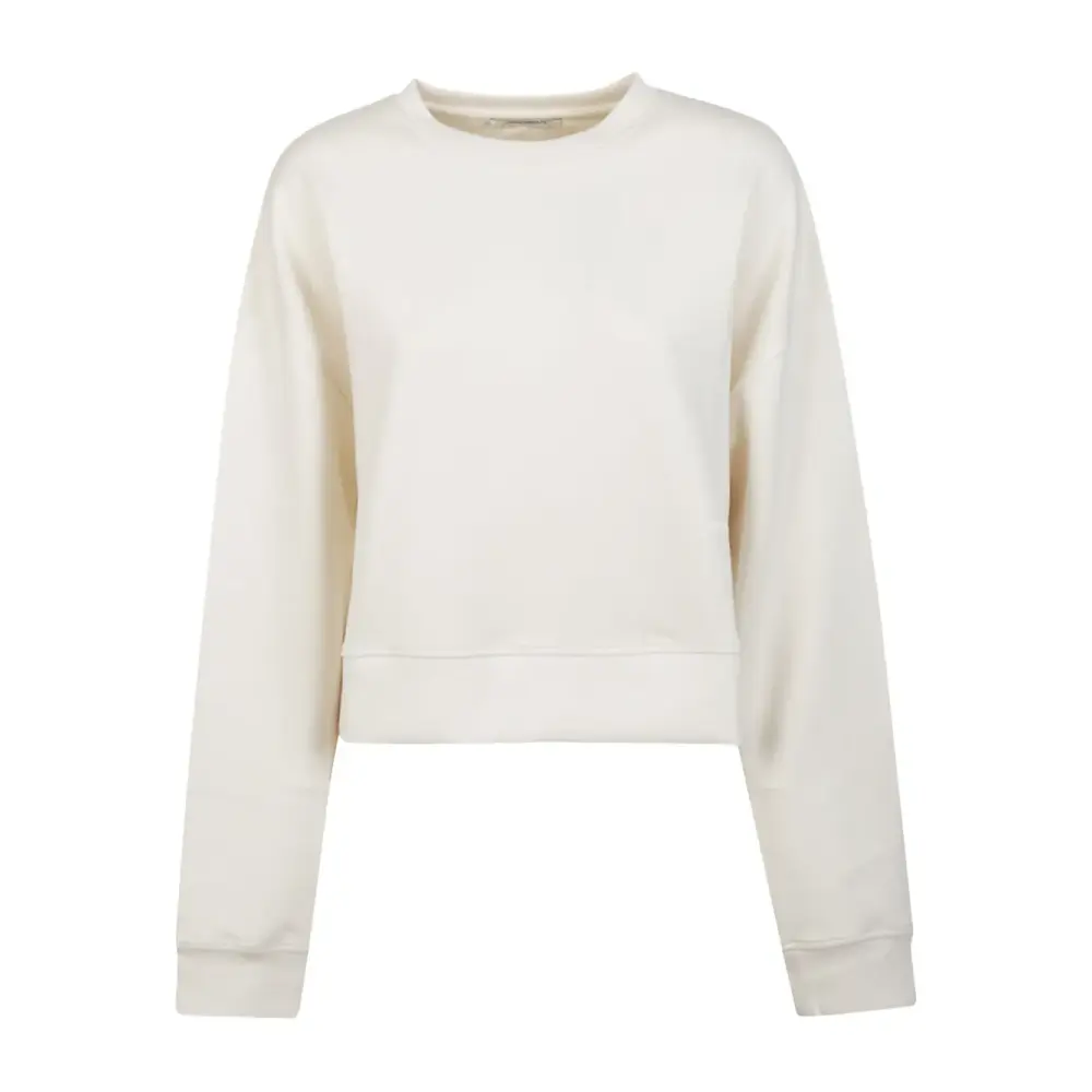 оф-вайт (молочный) свитер с круглым вырезом, длинными рукавами и трикотажными манжетами