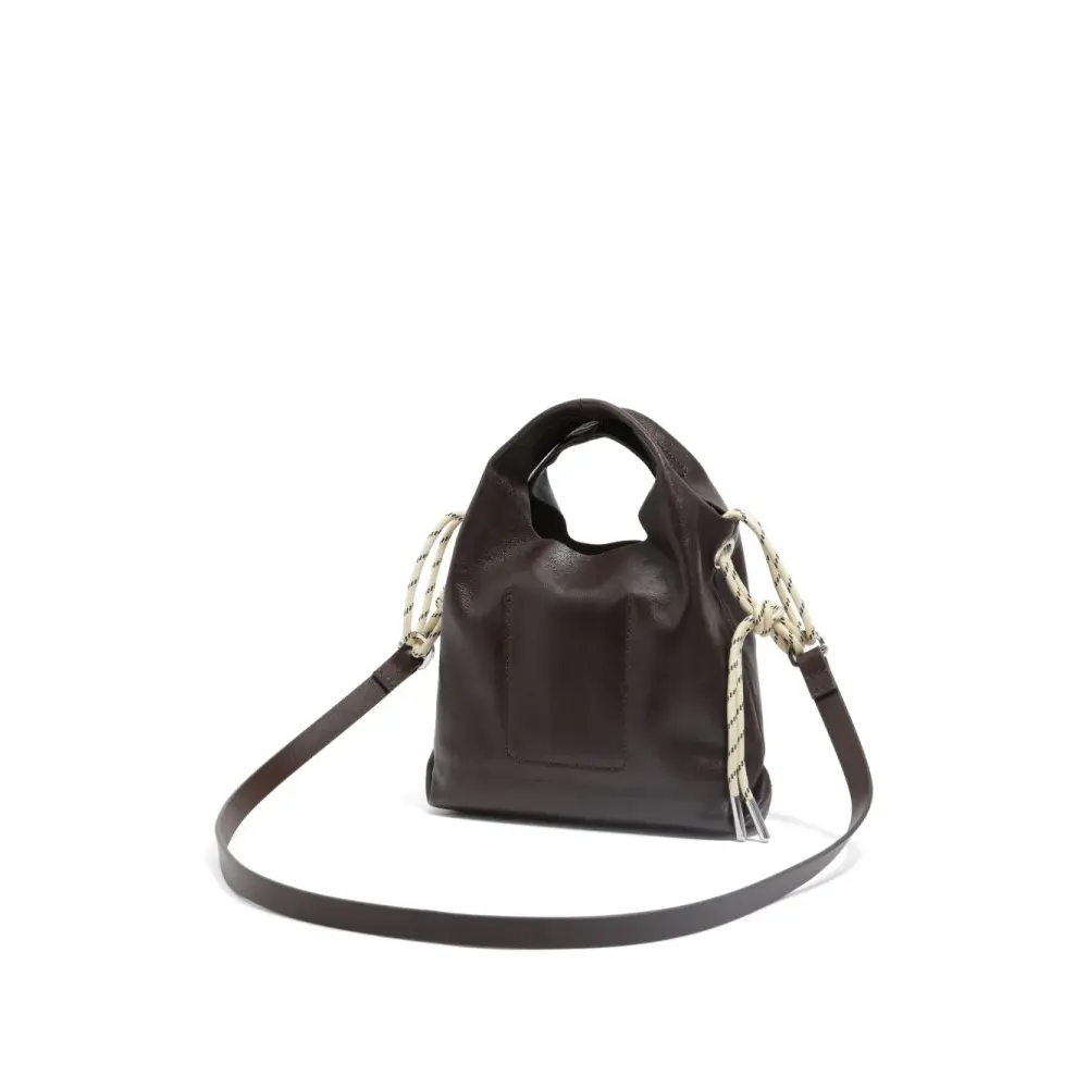 коричневые верхние ручки из коровьей кожи, съемный плечевой ремень, деталь в виде верёвки
