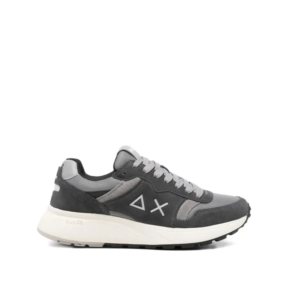 серый цвет, шнуровка, логотип, резиновая подошва, многослойный дизайн