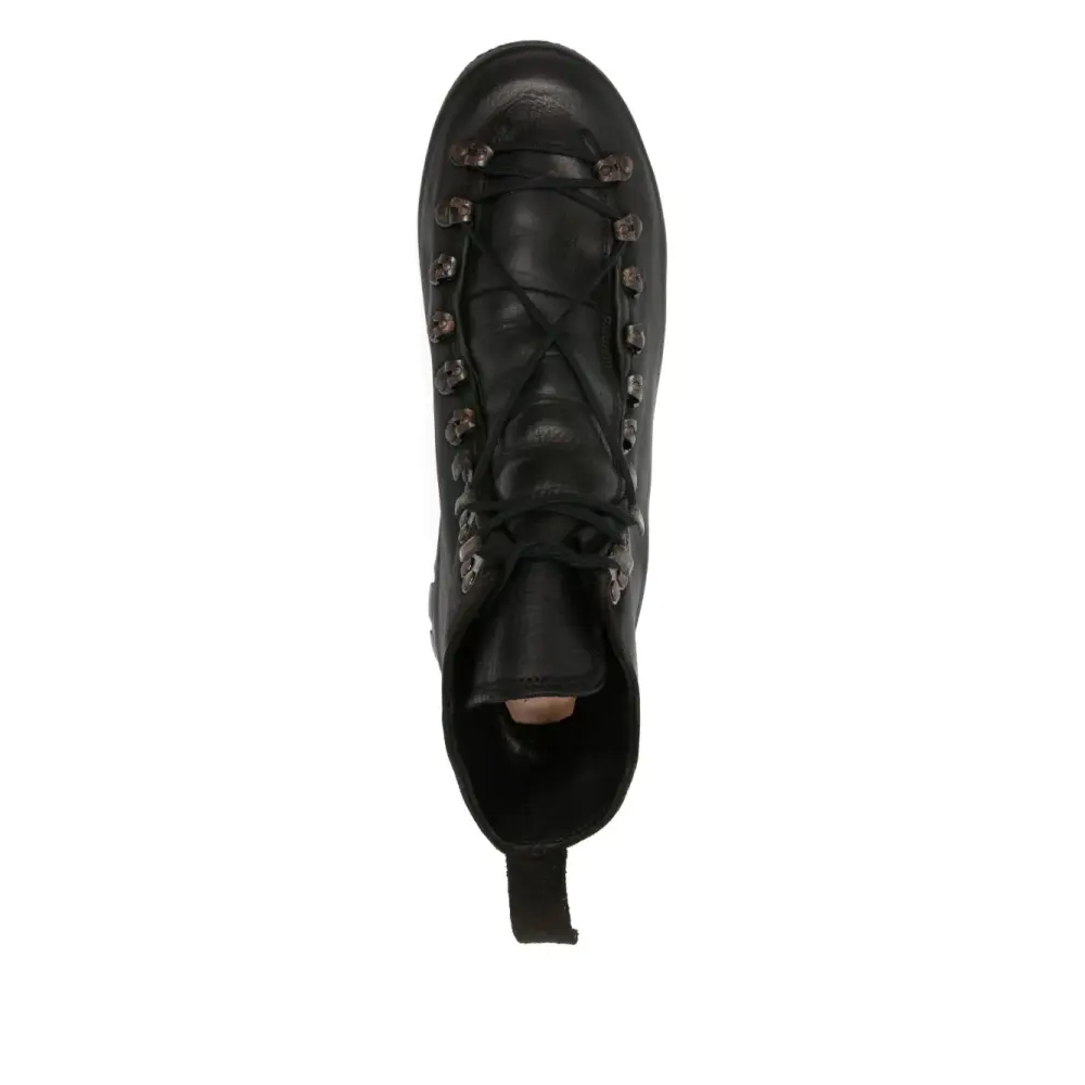 черная кожаная обувь на шнуровке с резиновой подошвой и круглым носком