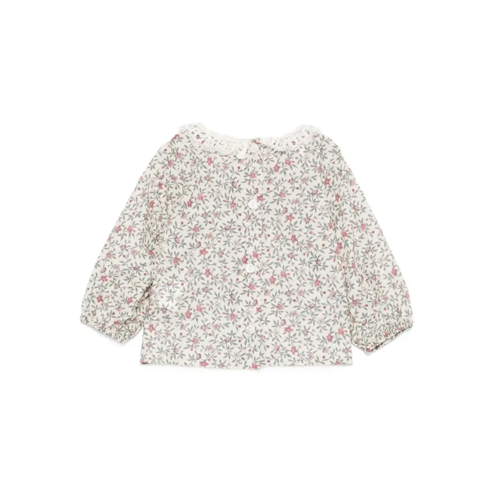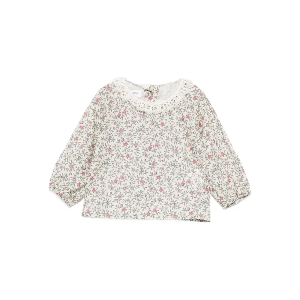 Блузка с цветочным принтом и кружевной отделкой