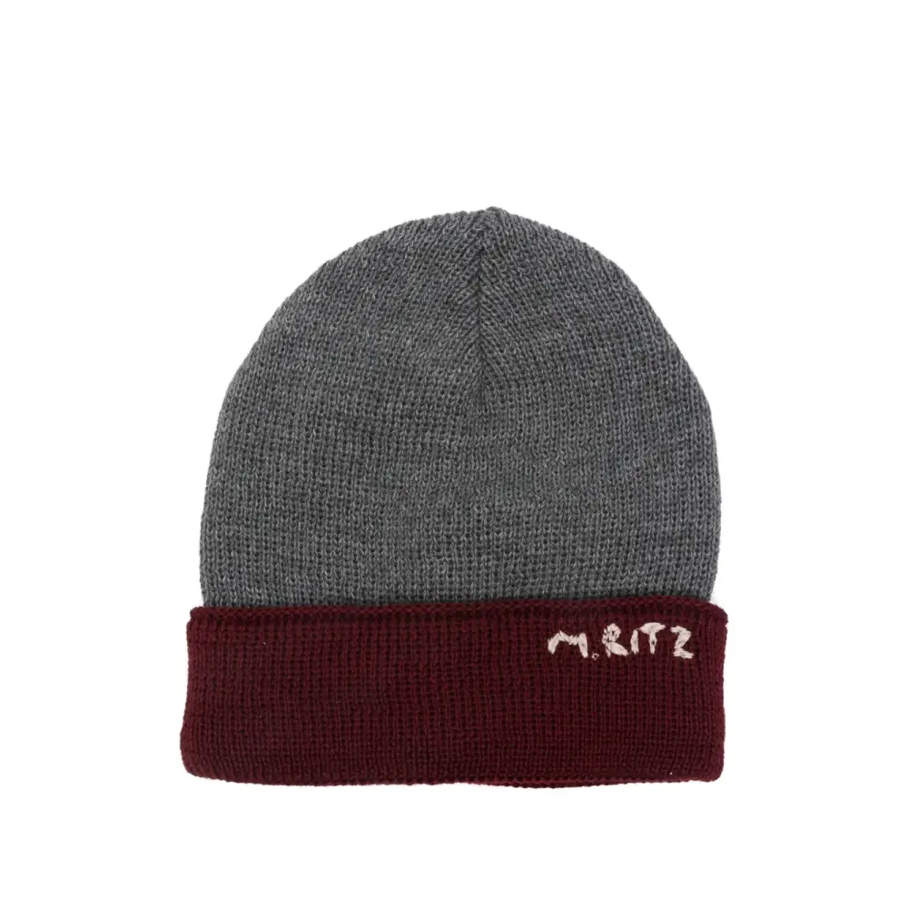 Серая вязаная шапка с отворотом и вышитым логотипом