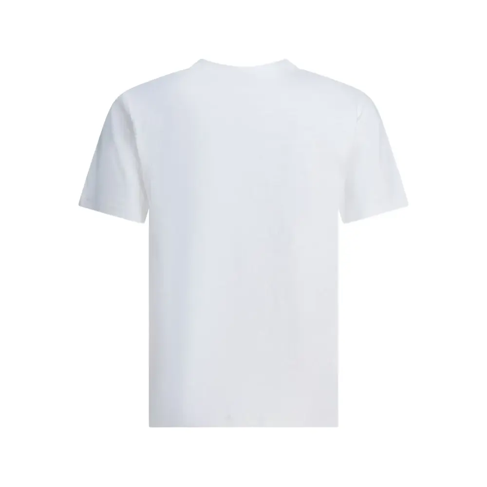 белая хлопковая футболка с короткими рукавами, круглым вырезом и деталями в виде пуговиц