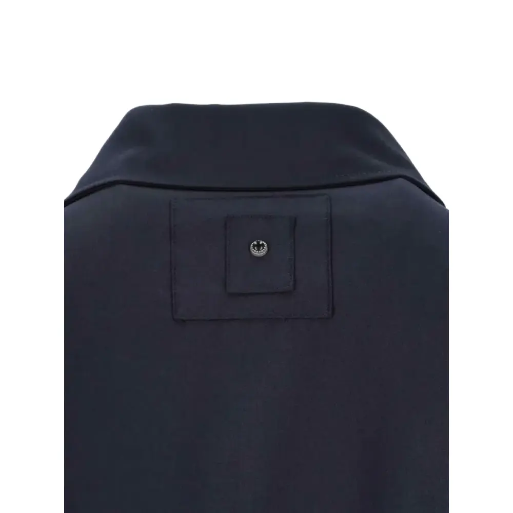голубая рубашка с застежкой на пуговицы, двумя нагрудными карманами, отложным воротником, длинными рукавами и манжетами на пуговицах