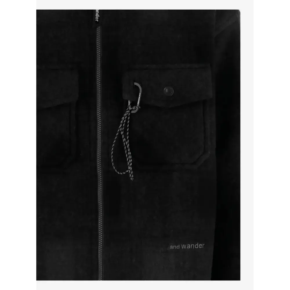 черный классический воротник, нагрудные карманы, застежка-молния спереди, клапан на пуговице, деталь-карабин
