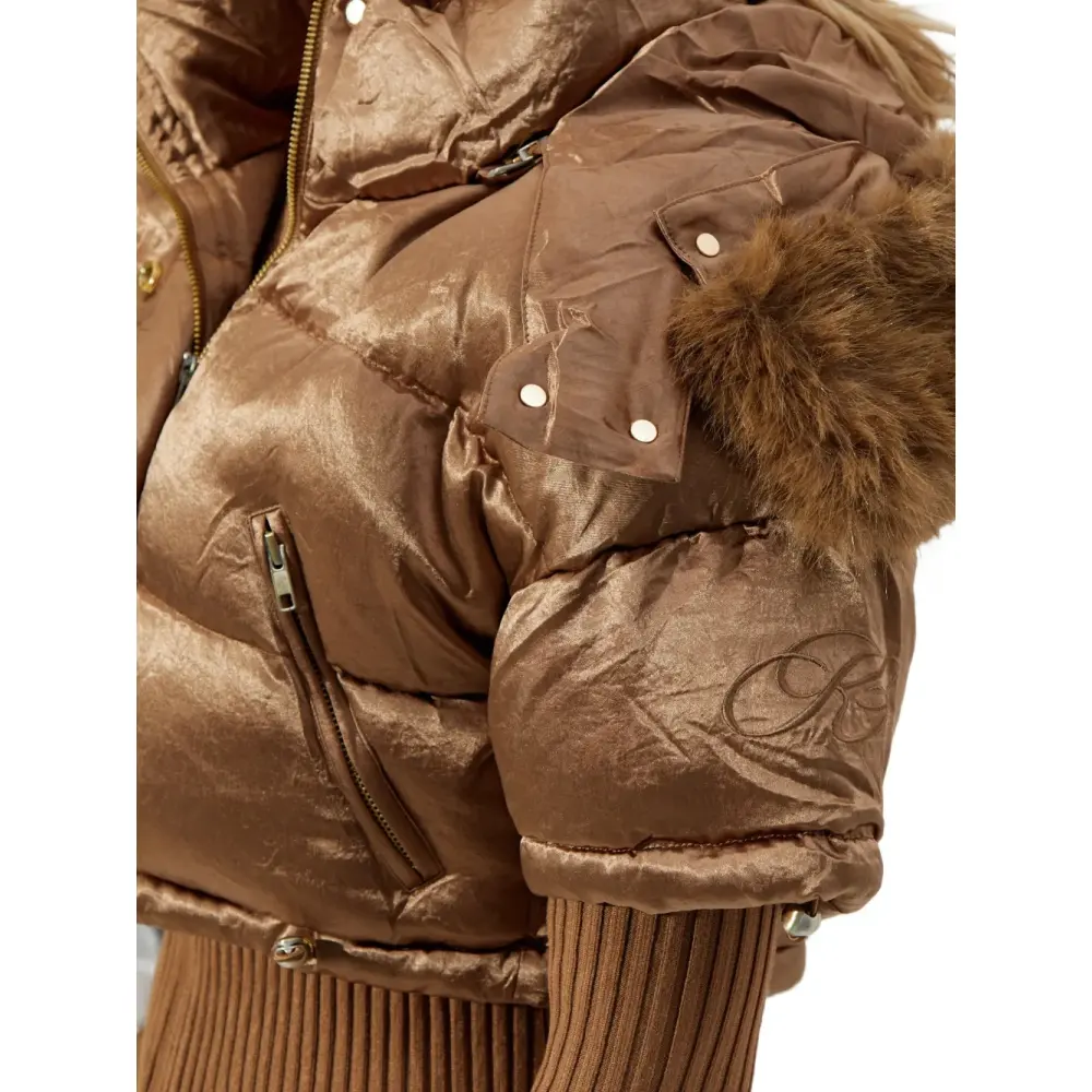 коричневый цвет, отделка из искусственного меха, застежка-молния, застежка на кнопки спереди, передние карманы на молнии