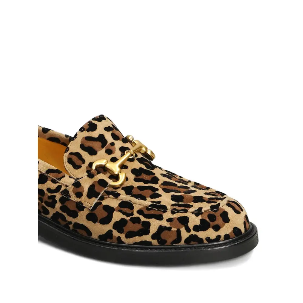 бежевые и коричневые с анималистичным принтом, детали золотистого цвета, плоская подошва, модель без застежек, миндалевидный носок