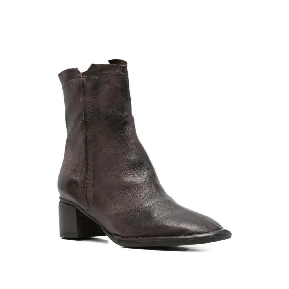 темно-коричневые ботильоны на боковой молнии с квадратным каблуком и заостренным носком