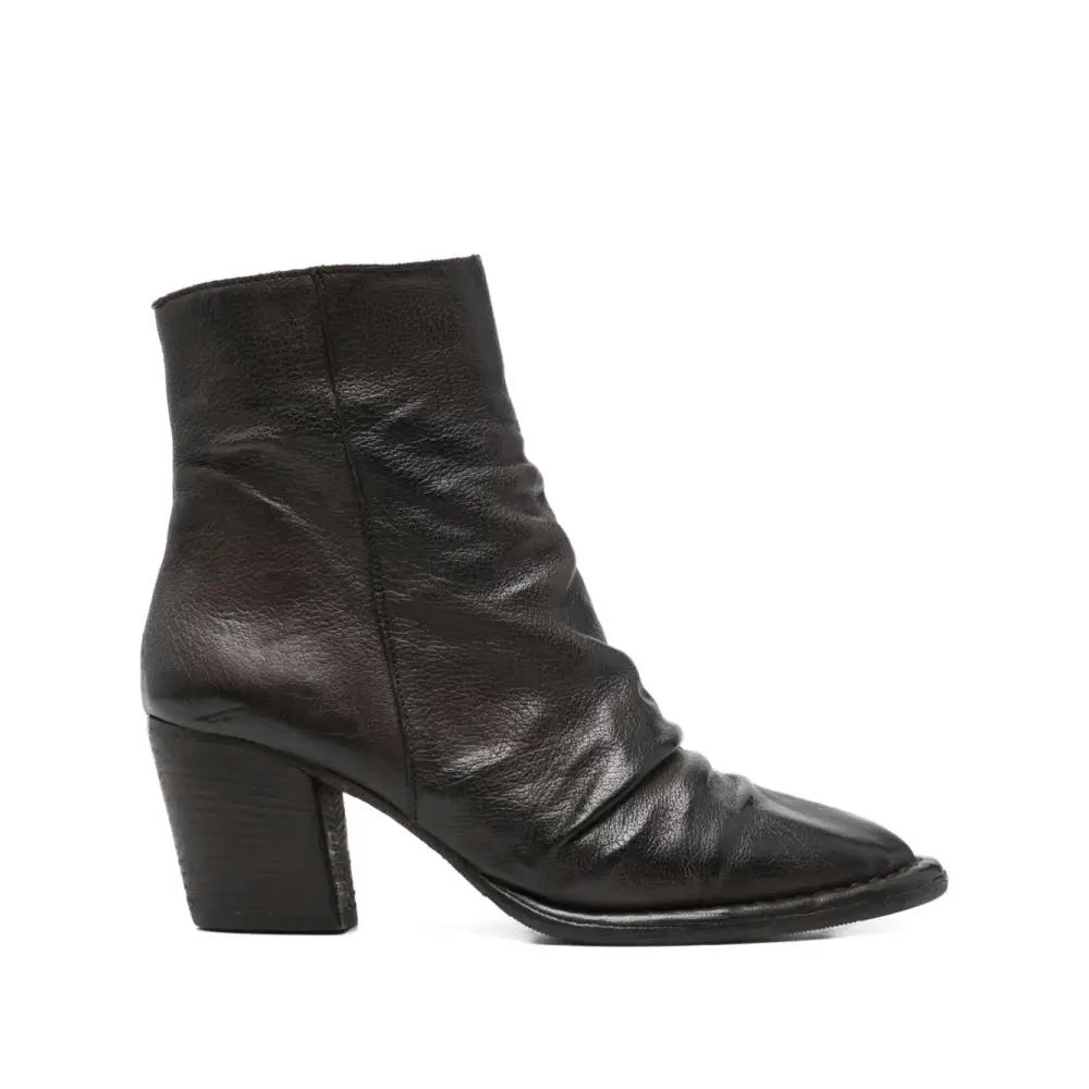 темно-коричневые туфли с драпировкой, боковой молнией, заострённым носком и каблуком-«рюмочкой»