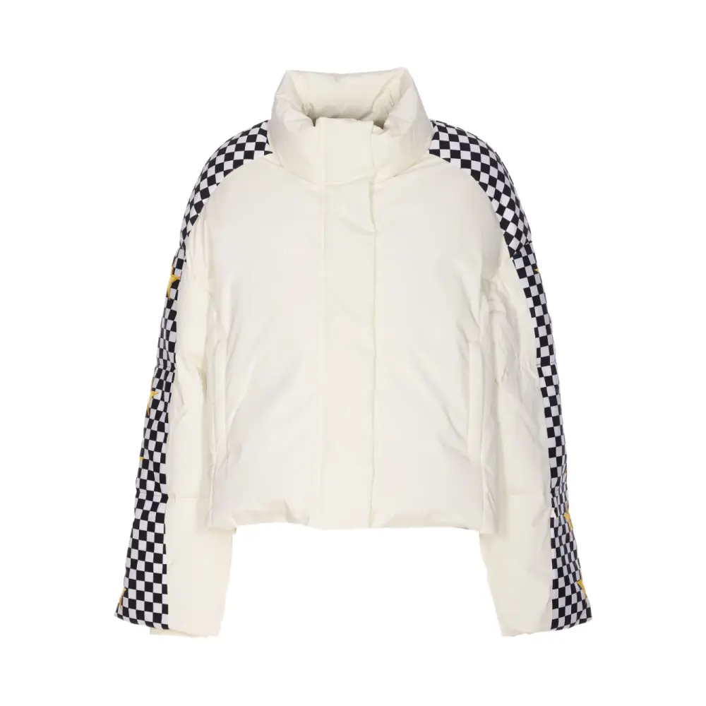 белый рукав с шахматным узором, нашивка-звезда на рукавах, высокий воротник