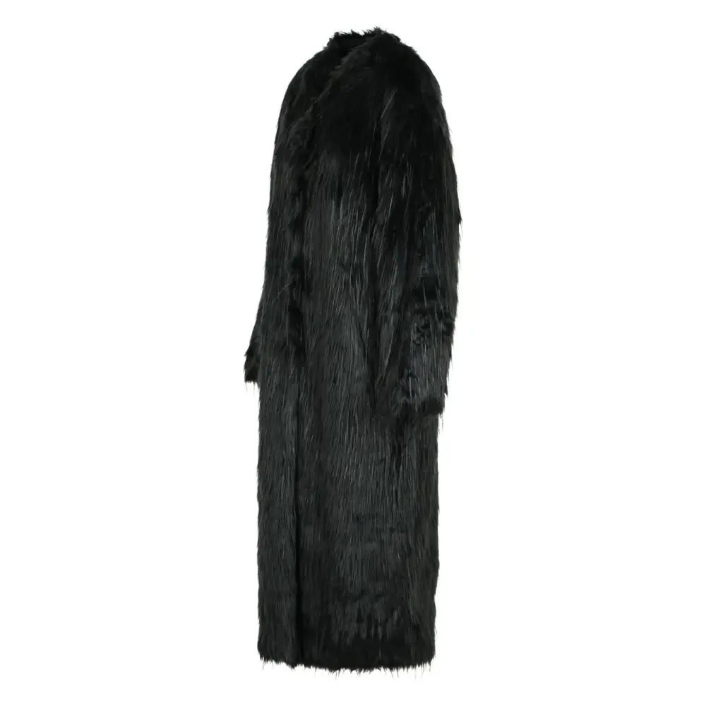 чёрная искусственная меховая шуба с потайной застёжкой