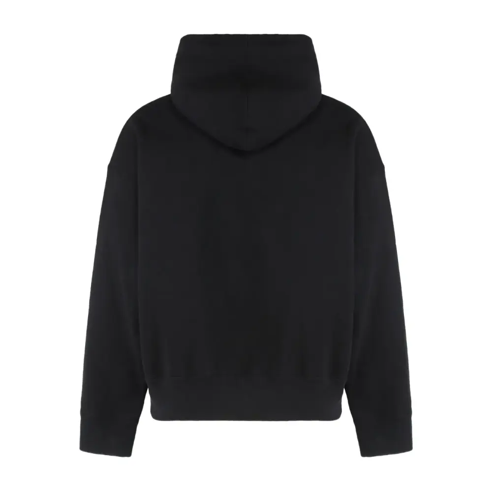 черный худи с передним карманом-кенгуру, длинными рукавами, ребристыми манжетами и ребристым подолом