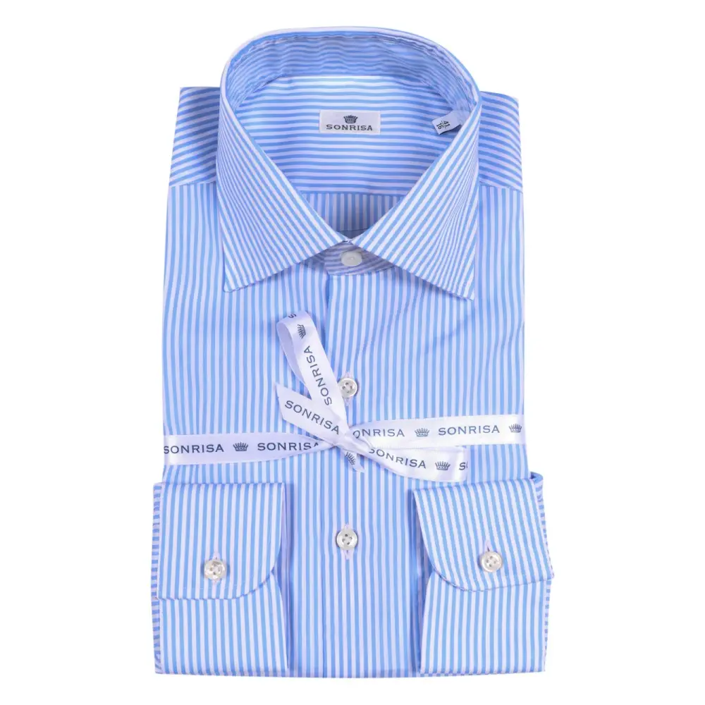 голубая рубашка в полоску, застегивающаяся на пуговицы, манжеты на пуговицах, хлопок