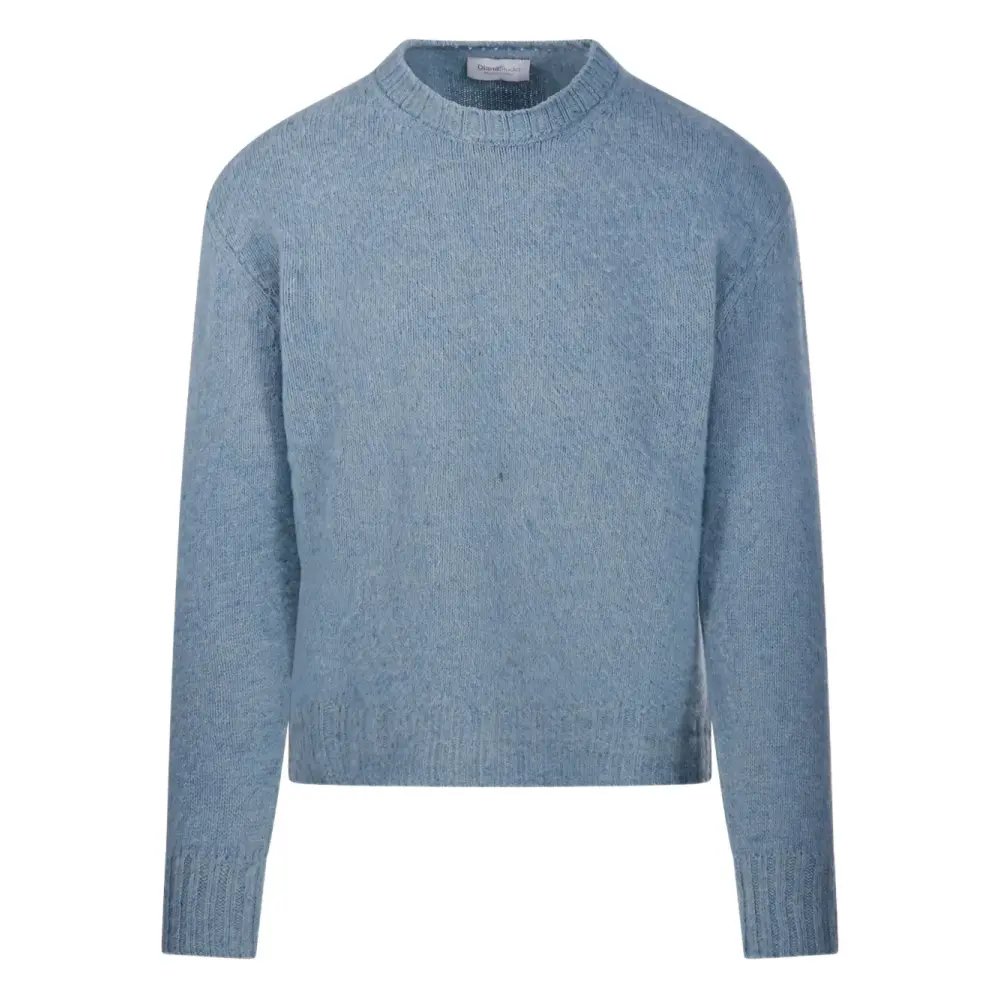 небесно-голубой джемпер с круглым вырезом, длинными рукавами, ребристыми манжетами и кромкой, трикотажной фактурой