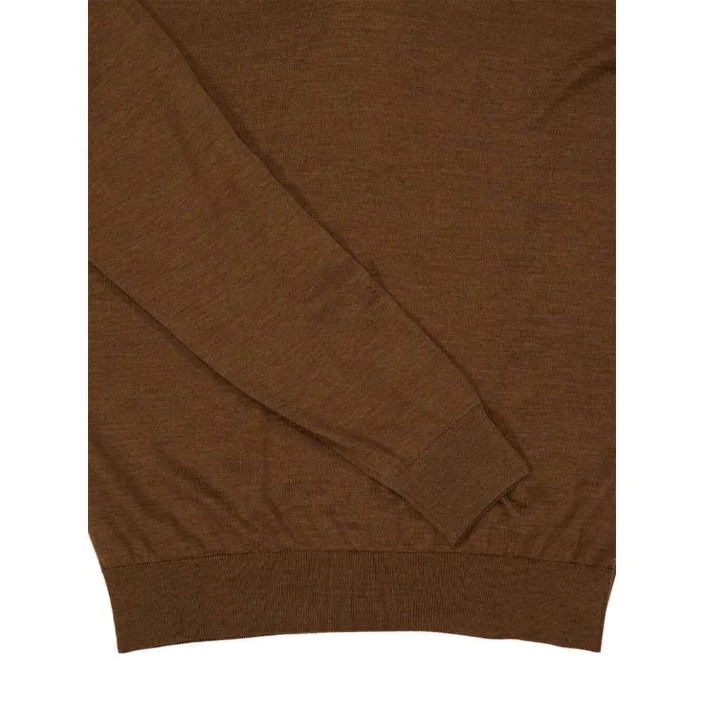 коричневый цвет, V-образный вырез, длинные рукава, ребристый край, ребристые манжеты, тонкая вязка