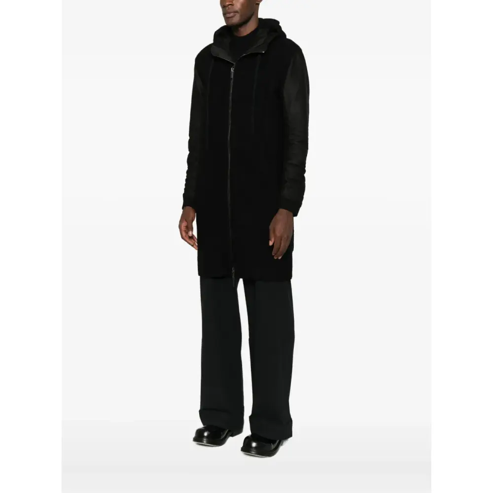 Пальто с капюшоном и полосатыми деталями