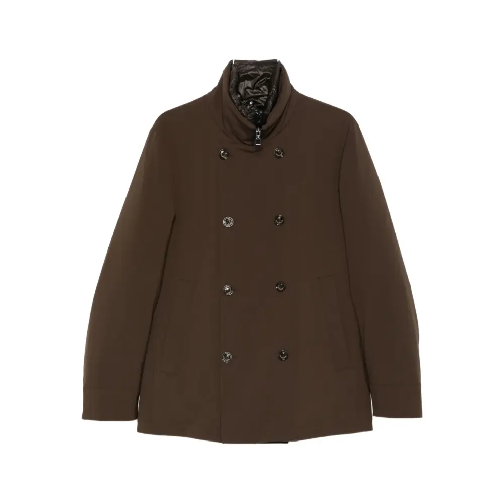 Двубортное пальто с высоким воротником