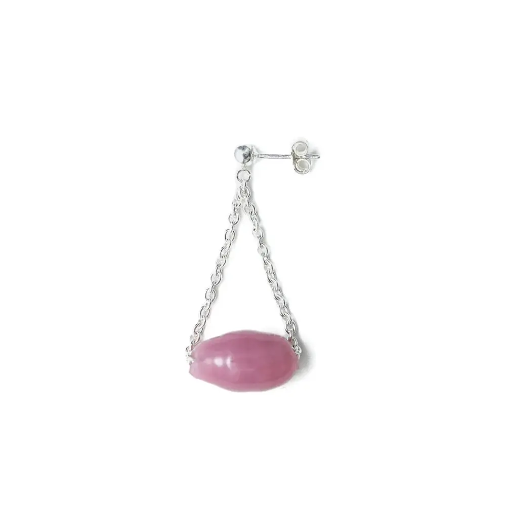 розовая серьга с цепочкой, застежкой-гвоздиком и подвеской с бусинами. Все изделия изготовлены вручную. Это одиночная серьга.