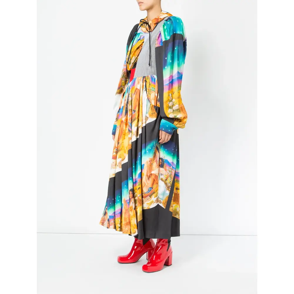 Плиссированное платье со смешанным принтом