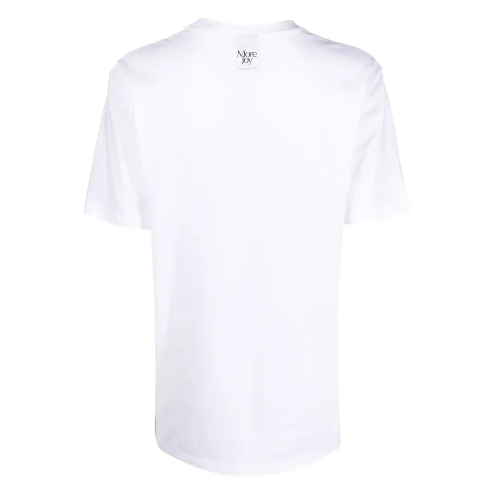 Белый, органический хлопок, графичный принт спереди, круглый вырез, короткие рукава и прямой подол. Ответственный выбор: Этот товар как минимум на 50% состоит из органических материалов.