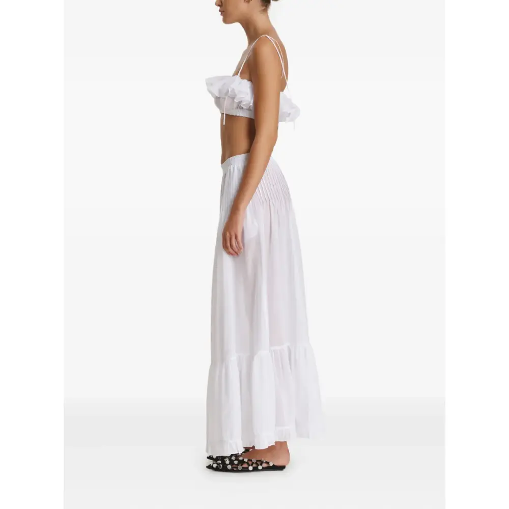 белый топ с оборками, тонкими бретелями и эластичным подолом