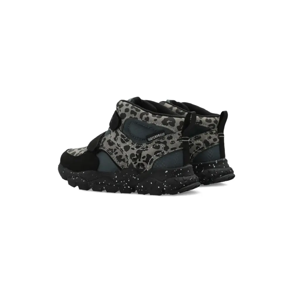 серые водонепроницаемые с леопардовым принтом, ремешком на застежке, пятнистой подошвой и петлей для подтягивания