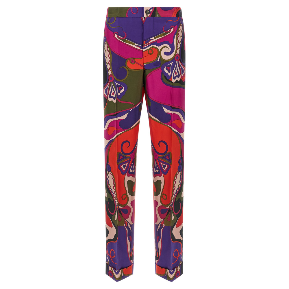 Брюки из шелкового твила с принтом по всей поверхности, прямой крой, закрепленная складка, эластичный пояс сзади, застежка на молнию и пуговицу спереди, карманы, отвороты на нижней части брюк.Этот продукт, как и многие другие изделия Pucci, выполнен с принтом по всей поверхности, который располагается на каждом изделии по-разному; полученный вами товар может отличаться от изображенного на фото.