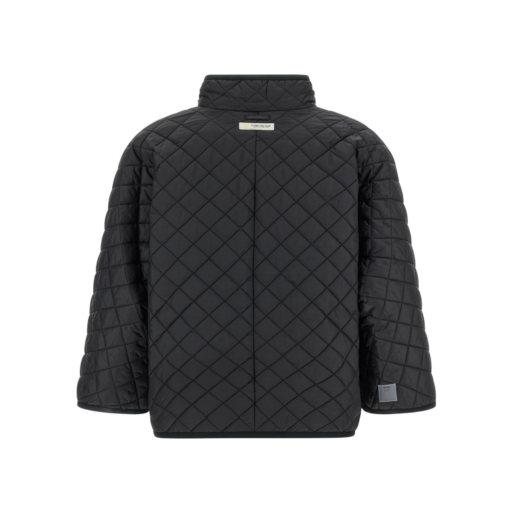 Короткая двусторонняя накидка «Delfina» из водонепроницаемого холста, стёганная утеплителем Cameluxe с ромбовидной простежкой с одной стороны и гладкая с другой, воротник с отложным лацканом, застёжка на молнию спереди, длинные рукава-кимоно.Утеплитель Cameluxe
