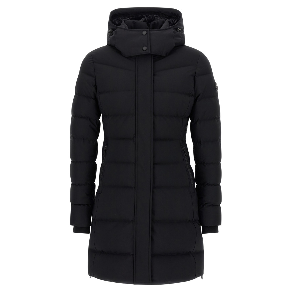 Стёганная и утеплённая куртка-парка 'Watershed 3', съёмный капюшон на молнии для смены отделки, высокий воротник, передняя застёжка с капюшоном, боковая нашивка с логотипом, длина до колена с боковыми разрезами на молнии, длинные рукава с молнией внизу и вязаные манжеты.