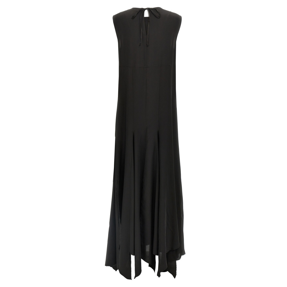 Платье из шелкового крепдешина 'Spicchi' с разрезами по краю юбки, круглым вырезом горловины, завязкой на спинке и вырезом.