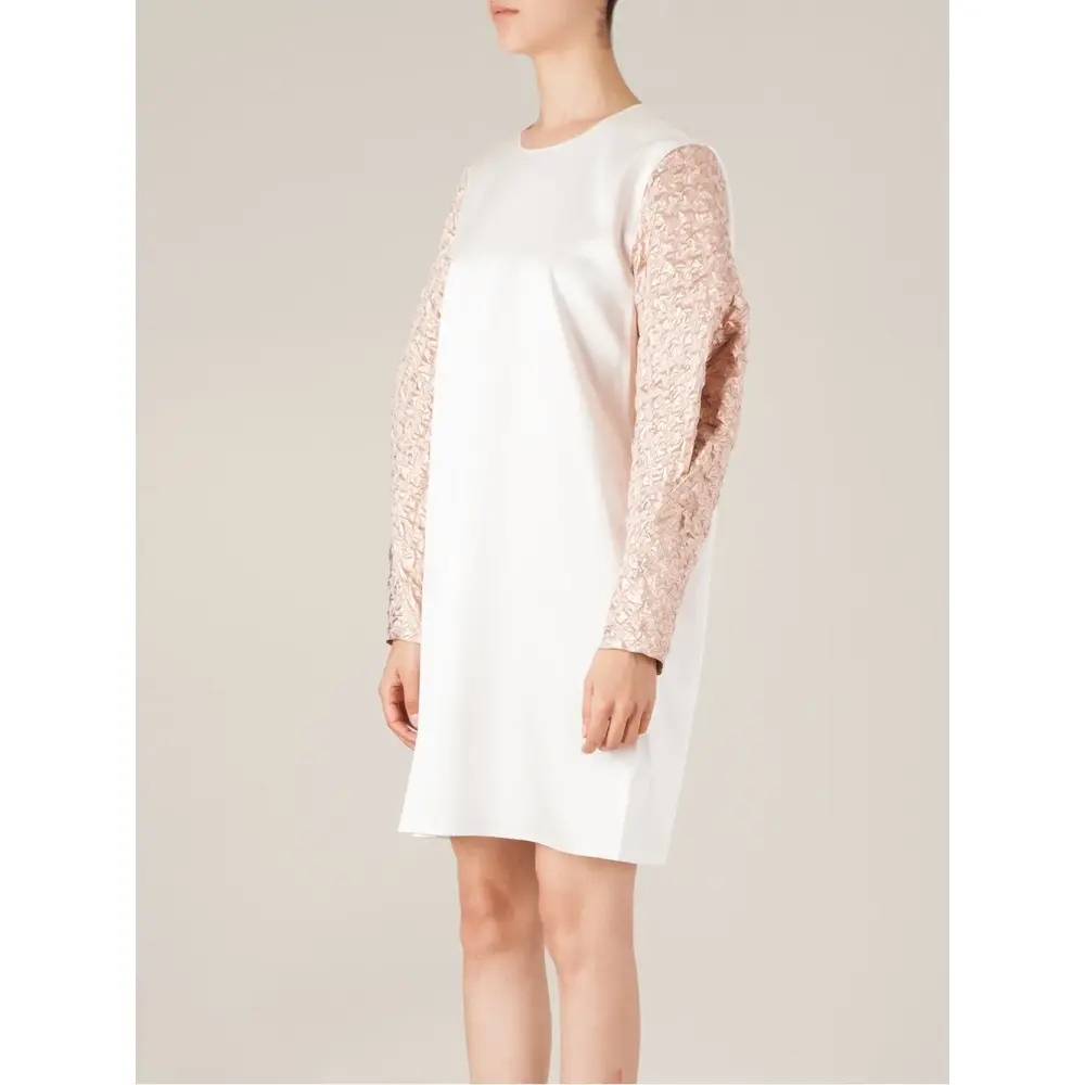 Белое платье из шёлкового микса с контрастными объёмными рукавами от Maison Rabih Kayrouz.
