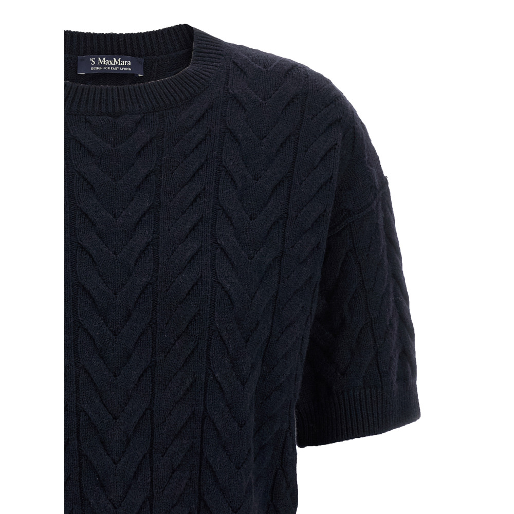 Шерстяной свитер 'Dominus', круглый вырез, косичная вязка, короткие рукава.