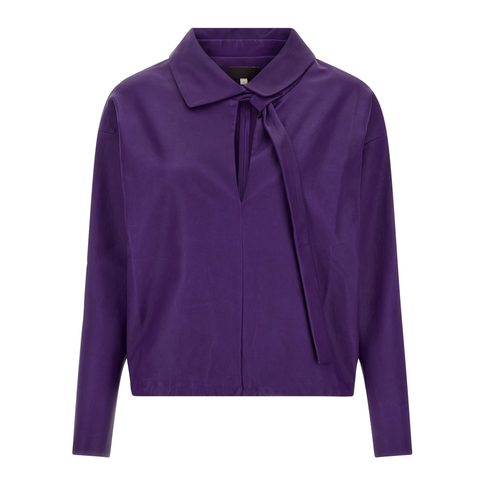 Блуза «Graziela» из кожи наппа plongé, рубашечный воротник, регулируемый V-образный вырез, длинные рукава с необработанным краем и спущенной линией плеча, эластичный низ, хлопковая подкладка.