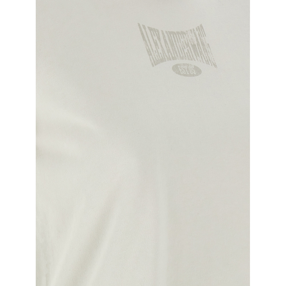 Футболка из хлопка цвета молочный с эффектом поношенности, тоном-в-тон принтом логотипа, круглым вырезом и короткими рукавами.