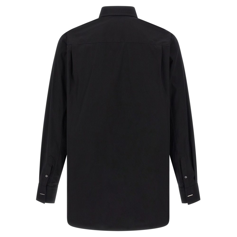 Рубашка из хлопкового поплина с вышивкой логотипа в тон и скрытой передней застёжкой на пуговицы, длинные рукава с манжетами для запонок.