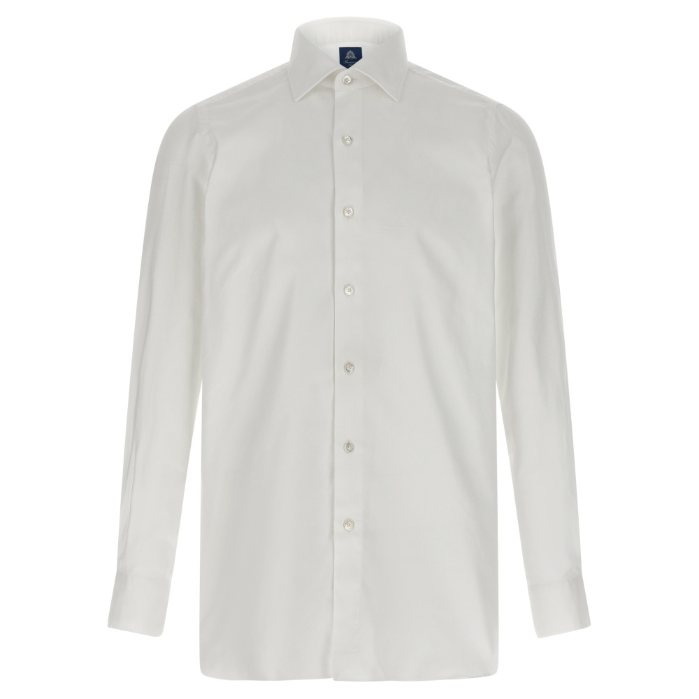 Хлопковая рубашка 'Napoli' с застежкой на пуговицы, длинными рукавами с манжетами, контрастной атласной деталью с логотипом на боковых разрезах.