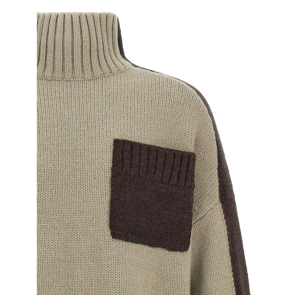 Двухцветный шерстяной и альпаковый свитер 'Two Tone Patch Pocket' с высоким воротником, нагрудным карманом, длинными рукавами с манжетами и заниженными плечами, а также вышивкой с логотипом на спине.
