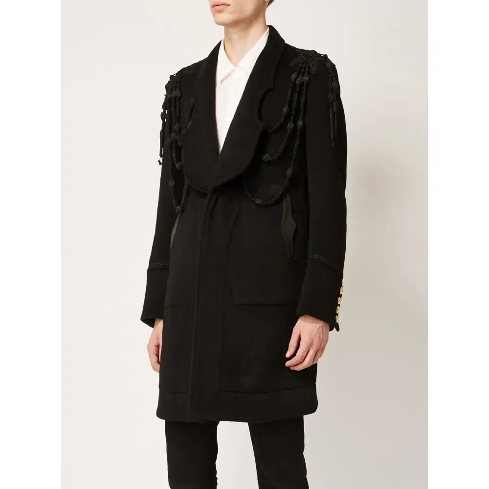 Черное пальто с панельным дизайном и вышивкой из микса шерсти и кашемира от The Soloist.