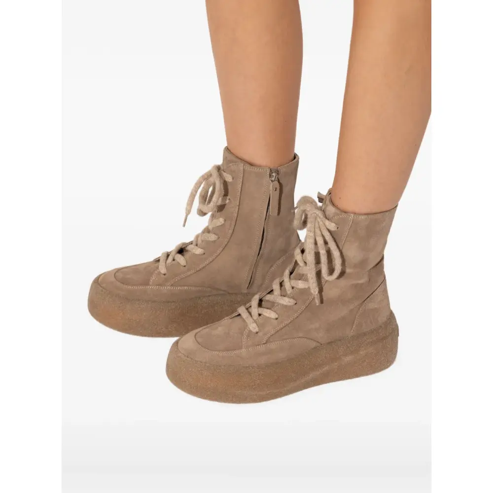 светло-коричневый цвет, шнуровка, боковая молния, круглый носок, платформенная подошва, высота до щиколотки