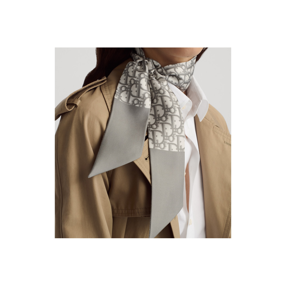 Серый принт Dior ObliqueКонтрастная жаккардовая полоса с подписью Christian Dior на оборотеОстроконечные края100% шелковый твилСделано в ИталииРазмеры: 105 x 6 см (Длина x Ширина)