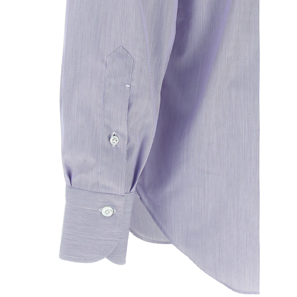 Рубашка 'Napoli' в полоску из хлопка с застежкой на пуговицы, длинными рукавами с манжетами, контрастной сатиновой деталью с логотипом на боковых разрезах.